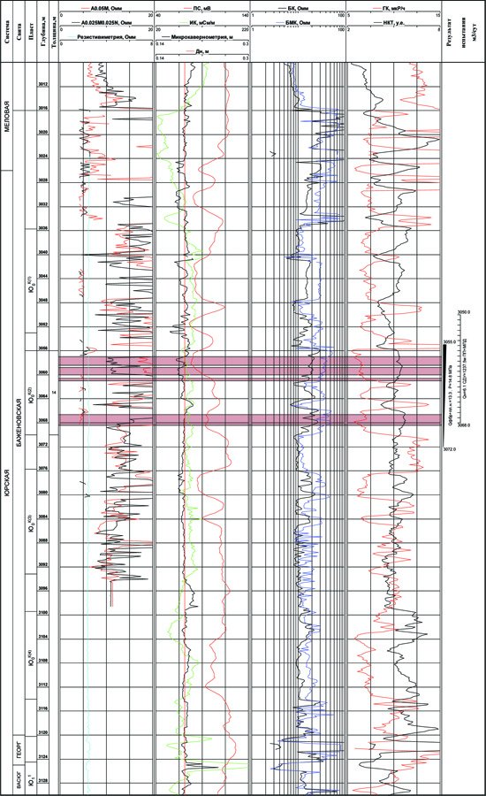 Общая пористость коллекторов определялась по комплексу нейтронного, гамма- и бокового методов ГИС с учётом поправок за содержание глинистой, органической и сидеритовой компонент.