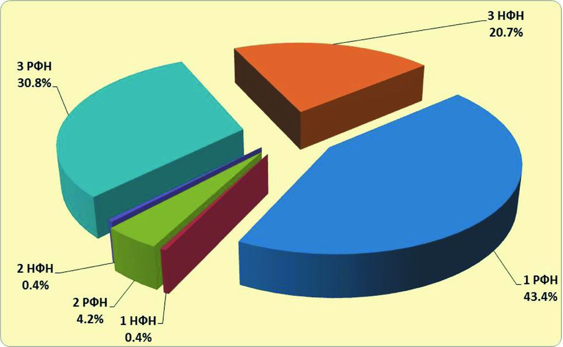 Наибольшая часть трудноизвлекаемых запасов нефти (74%) оказалась сосредоточенной в первой и третьей категориях ТрИЗ РФН ХМАО (рис.1), на долю которых приходится 97% накопленной добычи нефти по всем залежам ТрИЗ, степень выработки извлекаемых запасов нефти промышленных категорий составляет 15%.
