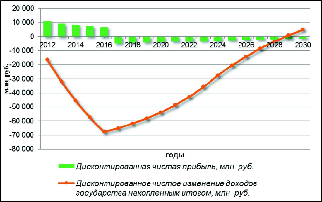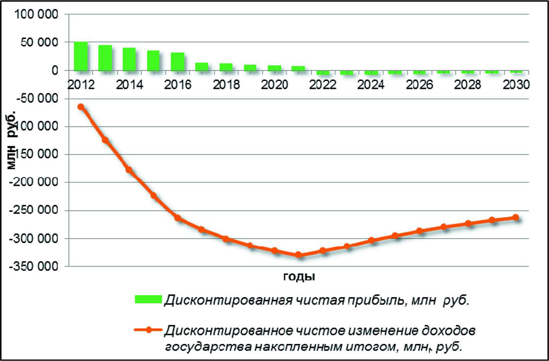 В результате принятия льгот по проектам всех категорий чистая прибыль недропользователей становится положительной на период введения льготы, суммарная величина может изменяться от 1.30 млрд руб. до 220.14 млрд руб., значение которой остаётся отрицательным для первой категории и положительной для второй и третьей.