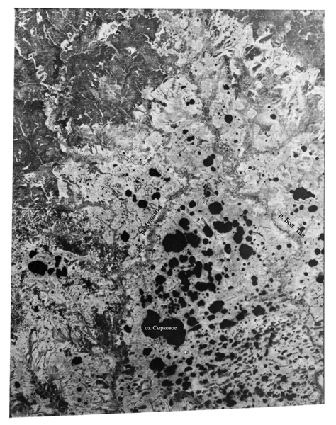 Рис.1. Космическое фотоизображение южной части Шаимского нефтегазоносного района.