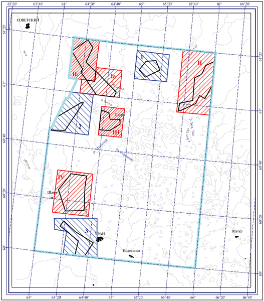Для проверки временем мы расширили ее границы до 425 км2 с тем, чтобы захватить фланги «старых» месторождений: Картопьинского, Ловинского и Пайтыхского.
