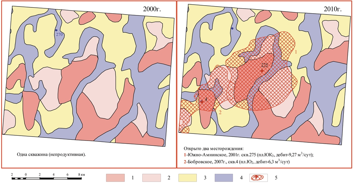 Только пять открытий (4%) попало на бесперспективные, непродуктивные космофотоземли, дав оценку прогнозированию «наоборот» (полное неподтверждение) – это Новонялинское и Северо-Кондинское (на западе округа), Силамарское, Новобыстринское и Южно-Янчинское (в центральной части ХМАО – Югры) месторождения.