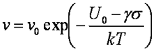 ν0 - имеет порядок скорости поперечной компоненты скорости звука в среде, U0 - энергия активации разрушения, γ — структурно-чувствительный параметр, имеющий размерность объема и равный: γ=nVa. Va - объем атома вещества, n — коэффициент локальных перенапряжений, показывающий во сколько раз локальные напряжения выше (ниже), чем средние приложенные. Коэффициент n характеризует наличие в теле пор, трещин и прочих неоднородностей, являющихся концентраторами механических напряжений. Величина коэффициента перенапряжений зависит от размера дефектов. Для трещины или поры, находящейся в упругой среде, n~√r, где r — радиус поры или длина трещины.