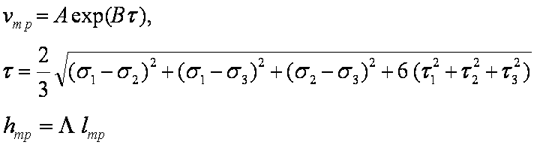 где τ — касательные напряжения, hтр, lтр - соответственно длина и раскрытость трещин, — скорость дилатансии. Всестороннее давление препятствует пластическому разрушению повышая величину потенциального барьера, т.е. уменьшая A: